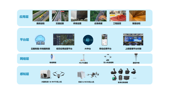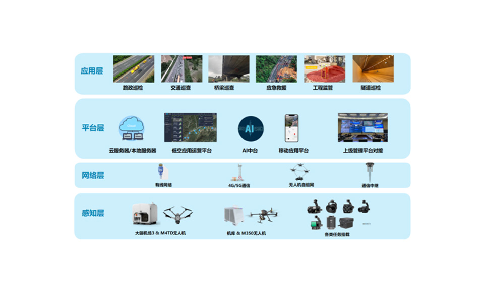 面向高速公路自动巡查预计应急救援等多场景需求,利用无人机及其机库,结合AI识别算法,实现高频次、全天时、快响应的全自主智能巡查与智能识别服务,形成“智慧巡查-智能预警-科学调度-应急处置”的闭环管理模式。